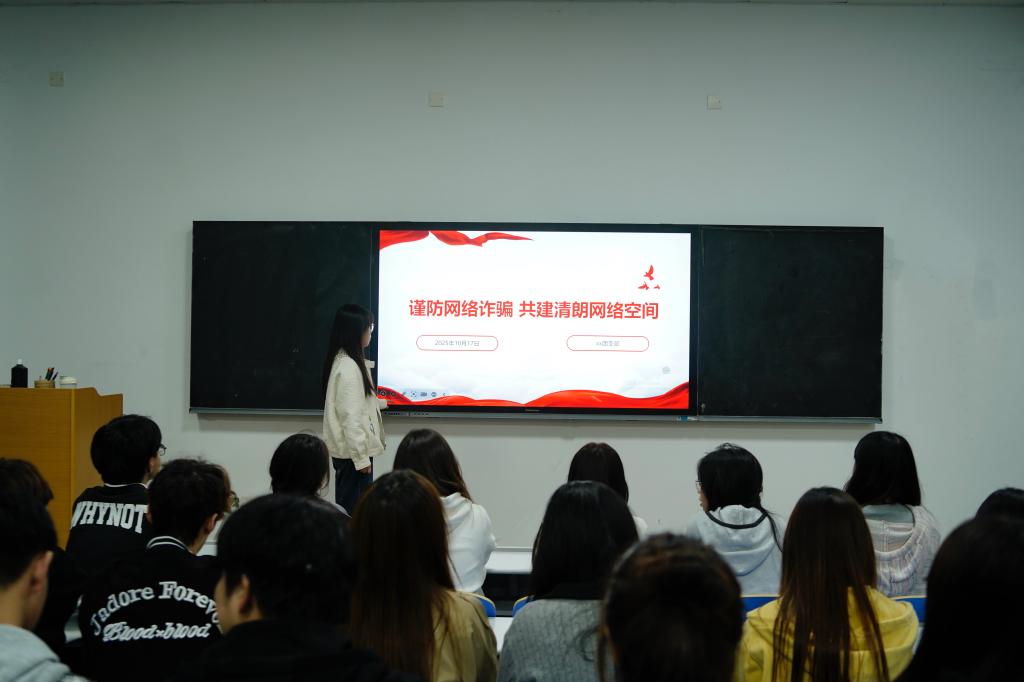 为进一步强化大学生网络安全防范意识,筑牢校园反诈“青春防线”,10月17日,我校开展以“谨防网络诈骗,共创清朗网络环境”为主题的思政班会。